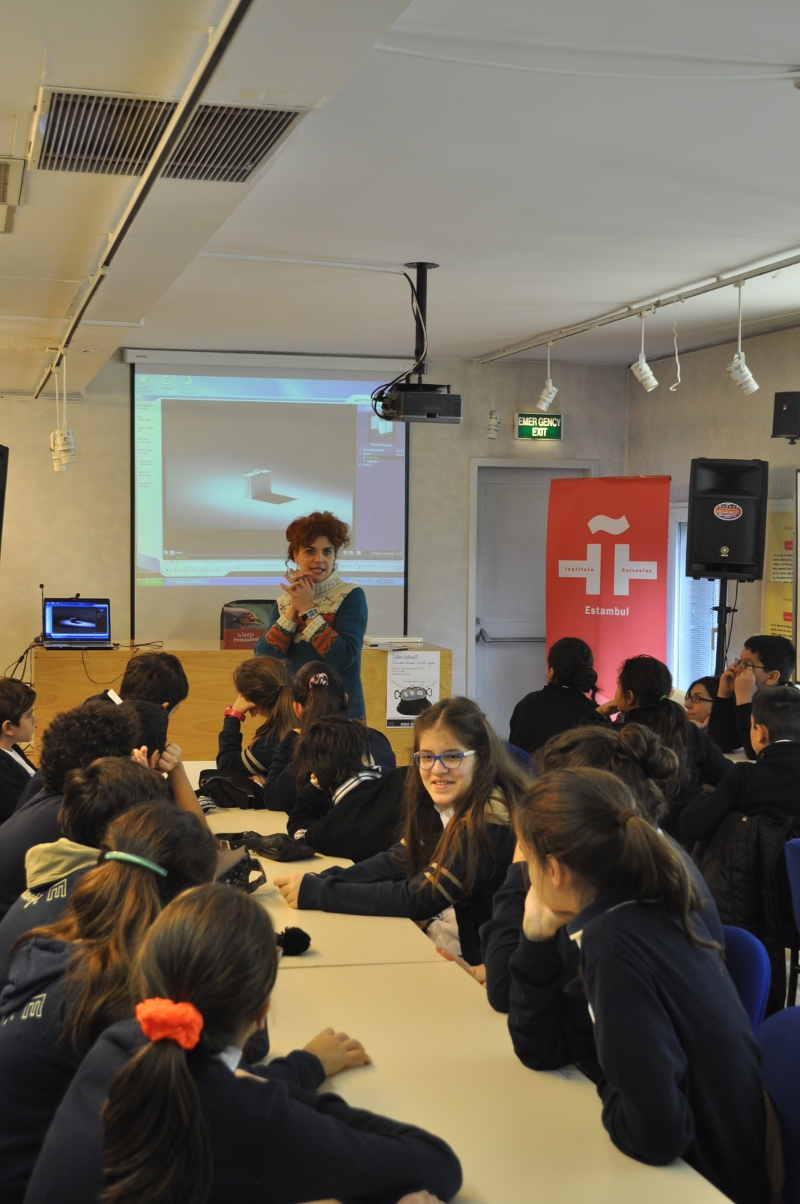 El taller estuvo impartido Eva María Mejuto Rial y Ana Raquel Méndez Fernández de la editorial OQO y en él participaron 25 niños y niñas de 2 colegios de Estambul: del Kent State College, que vinieron acompañados de sus profesoras Teresa Taskiran y Silvia Natan; y del Çevre Koleji, que vinieron con su profesor José Luis Pérez Cabello.